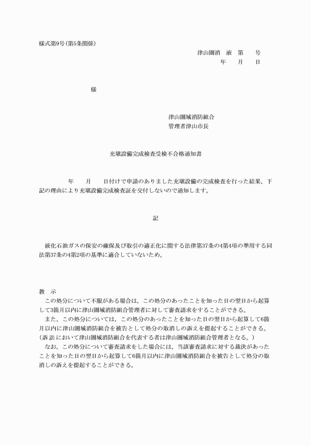 ○津山圏域消防組合液化石油ガスの保安の確保及び取引の適正化に関する法律の事務処理規程